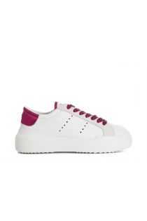Sneakers femme en similicuir. encolure et lacets colorés.