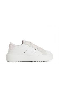 Sneakers femme en similicuir. encolure et lacets colorés.