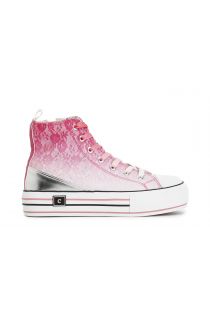sneakers mid dentelle dégradée à lacets dégradés hot pink