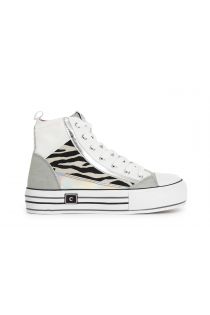 Sneakers mid avec insert zébré glamour. fermeture à lacets. semelle remontante de 40 mm avec détails couleur.