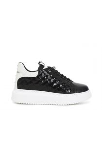 Sneakers avec semelle remontante et empeigne en cuir mise en valeur par un jeu de paillettes matelassées. Semelle remontante.