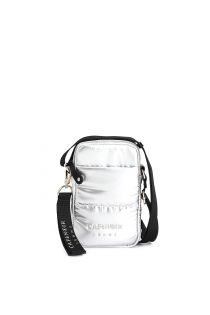 support de téléphone portable en nylon effet duvet avec logo et breloque en tpu silver