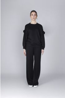 Sweat-shirt à col rond et manches volantées en polaire chaude viscose et lurex. Un vêtement décontracté, confortable, pratique et tendance. Idéal pour les loisirs, le bureau ou les occasions informelles avec une touche d'élégance. Le mannequin mesure 173 cm et porte une taille S.