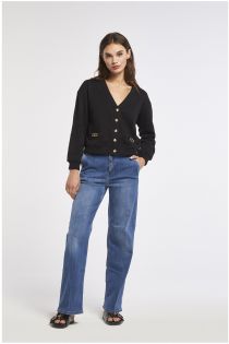 Sweat-shirt type cardigan avec boutons à logo et plaquettes à logo sur les poches