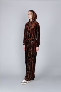 Sweat à capuche zippé en velours doux aux nuances subtiles et à la finition lumineuse. Idéal pour un look casual chic. Coupe classique. Le mannequin mesure 173 cm et porte une taille S.