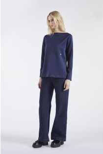 Sweat-shirt réalisé avec col bateau en tissu technique