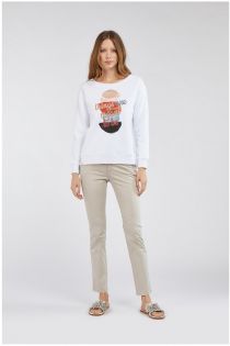 Sweater ras du cou au modèle basique et intemporel agrémenté d'un imprimé aux couleurs ombrées placé sur le devant. Une pluie de micro-perles transparentes parsemées sur l'imprimé donne de la lumière