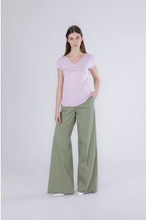 T-shirt léger et frais en jersey de viscose col v et manches courtes. logo sur le devant orné de strass irisés. le mannequin mesure 171 cm et porte une taille s. coupe : classique.