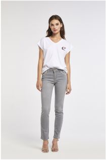 t-shirt à col en v en jersey de coton stretch avec logo white