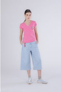 t-shirt à col en v imprimé cerises bubble gum