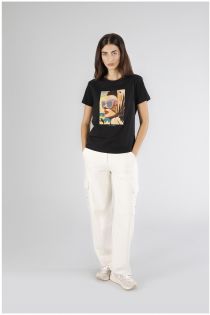 t-shirt à manches courtes avec imprimé femme avec des lunettes black