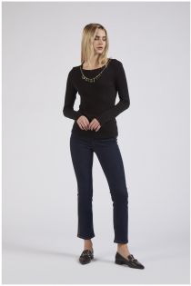 T-shirt à encolure ronde et manches longues en jersey de viscose chaud et confortable. une chaîne de bijoux précieux orne le décolleté à la manière d'un collier.