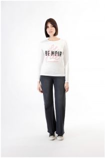 T-shirt à manches longues en coton stretch avec imprimé "be noir be free" sur le devant.