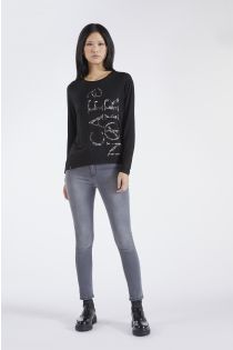 T-shirt à manches longues en jersey de viscose stretch avec logo brodé de paillettes.