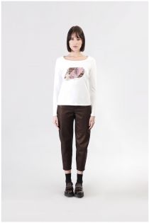 T-shirt à manches longues en coton stretch avec un imprimé multitechnique qui reproduit un sac à main pour femme.