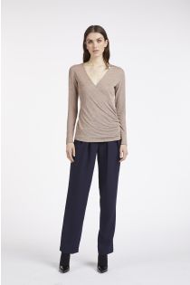 T-shirt cache-cœur à manches longues en jersey de viscose lurex. Pour un look resplendissant, à couper le souffle