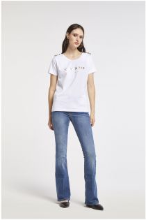 T-shirt en coton stretch avec imprimé logo et boutons à logo sur les épaules