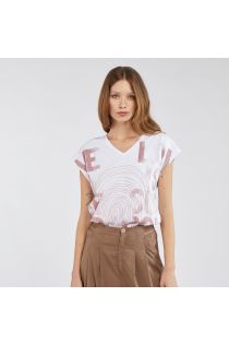 T-shirt en jersey de coton stretch avec un imprimé qui reproduit des lettrages maxi agrémentés par une broderie ton sur ton sophistiquée