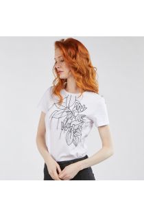 T-shirt en jersey de coton avec un important ramage de feuilles brodées ornant le haut de devant