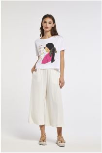 T-shirt en jersey de coton avec imprimé multi-technique reproduisant une femme vue de derrière
