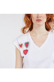 T-shirt en jersey de coton stretch agrémenté d'une délicate application de cœurs placée près de l'épaule droite