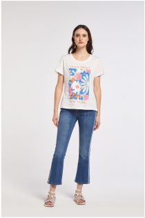 T-shirt en jersey de coton avec imprimé à fleurs et strass