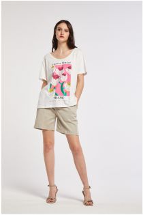 T-shirt en jersey de coton avec imprimé à fleurs et strass