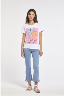 t-shirt en jersey de coton avec imprimé jeans sur le devant white