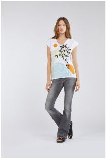 T-shirt en jersey de coton stretch avec un mélange d'imprimé et de broderies qui ornent le devant de sujets au style ethnique chic