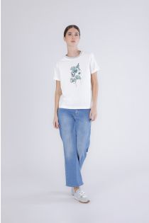 t-shirt imprimé pour femme avec bordure en lurex à l'encolure off white