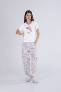 T-shirt en jersey de coton stretch coupe classique. encolure bordée festonnée en lurex et manches courtes. imprimé visage féminin aux délicates teintes pastel sur le devant pour un style à la fois féminin et polyvalent. le mannequin mesure 1.75 m et porte une taille s. coupe : classique.