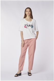 T-shirt large avec fente dans le dos en jersey de coton avec imprimé et broderie à fleurs