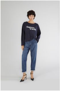 T-shirt oversize à manches longues en jersey de coton. le graphisme reproduit l'écriture "sapore di sole" avec des strass.