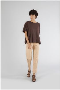 T-shirt bi-matière teint en pièce. avec une coupe oversize et des manches courtes.