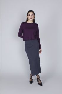 T-shirt à manches longues en jersey de viscose. Col rond et ourlet roulé pour un style décontracté et polyvalent. Idéal pour un look basique et confortable. Le mannequin mesure 172 cm et porte une taille S.