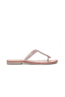 Tongs avec micro-strass nuancés et fils apparents spéciaux en raphia en couleur contrastante le long du périmètre de la semelle intérieure en cuir.
