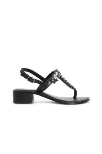 Tongs avec accessoire bijou en cuir talon h. 35 mm.