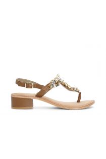 Tongs avec accessoire bijou en cuir talon h. 35 mm.