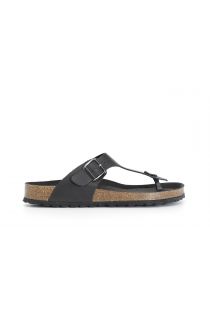 Tongs avec boucle en cuir sur semelle renforcée.