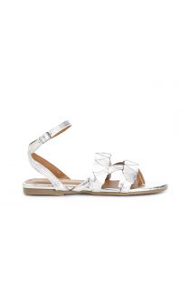tongs en cuir métallisé avec bride à la cheville silver