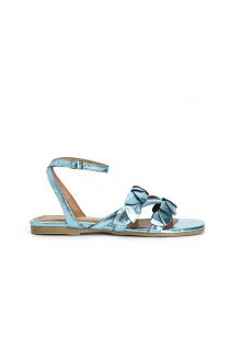 tongs en cuir métallisé avec bride à la cheville turquoise
