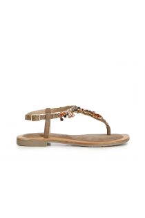 tongs en daim avec accessoire bijou taupe