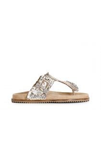 Tongs femme en cuir tressé avec boucle en strass. semelle intérieure en cuir.