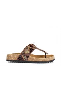 Tongs modèle mules avec base en liège et bande réglable décorée de strass dégradés. un croisement entre le style bohème et le style ethnique pour un été plein de style