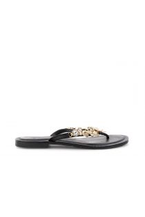 Tong plate à bride en cuir ornée d'appliqués de pierres décoratives. semelle intérieure anatomique en cuir pour un confort optimal au quotidien et semelle extérieure fine et souple de 1.4 cm. un modèle élégant et pratique idéal pour compléter des tenues d'été décontractées ou plus sophistiquées.