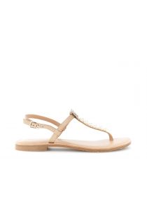 Sandales plates à fines brides et bride cheville ajustable. la bride centrale est ornée de perles décoratives et d'une boucle bijou. semelle intérieure en cuir confortable et semelle extérieure souple de 1.4 cm. idéales pour des looks d'été à la fois raffinés et décontractés.