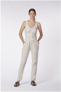 Top court avec boutonnage sur le devant et froncé sur les hanches