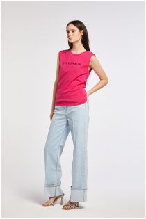 Top sans manches en coton stretch avec imprimé logo et boutons sur les épaules