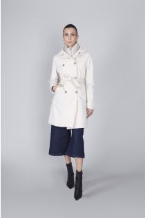Trench-coat matelassé bi-matière à simple boutonnage, avec bavette intérieure amovible en nylon irisé et ceinture à nouer. Idéal pour un style décontracté et un confort optimal. Coupe classique. Le mannequin mesure 173 cm et porte une taille S.