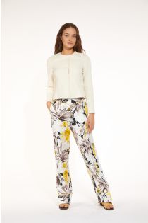 Veste à col rond en tissu de coton avec des bordures en similicuir